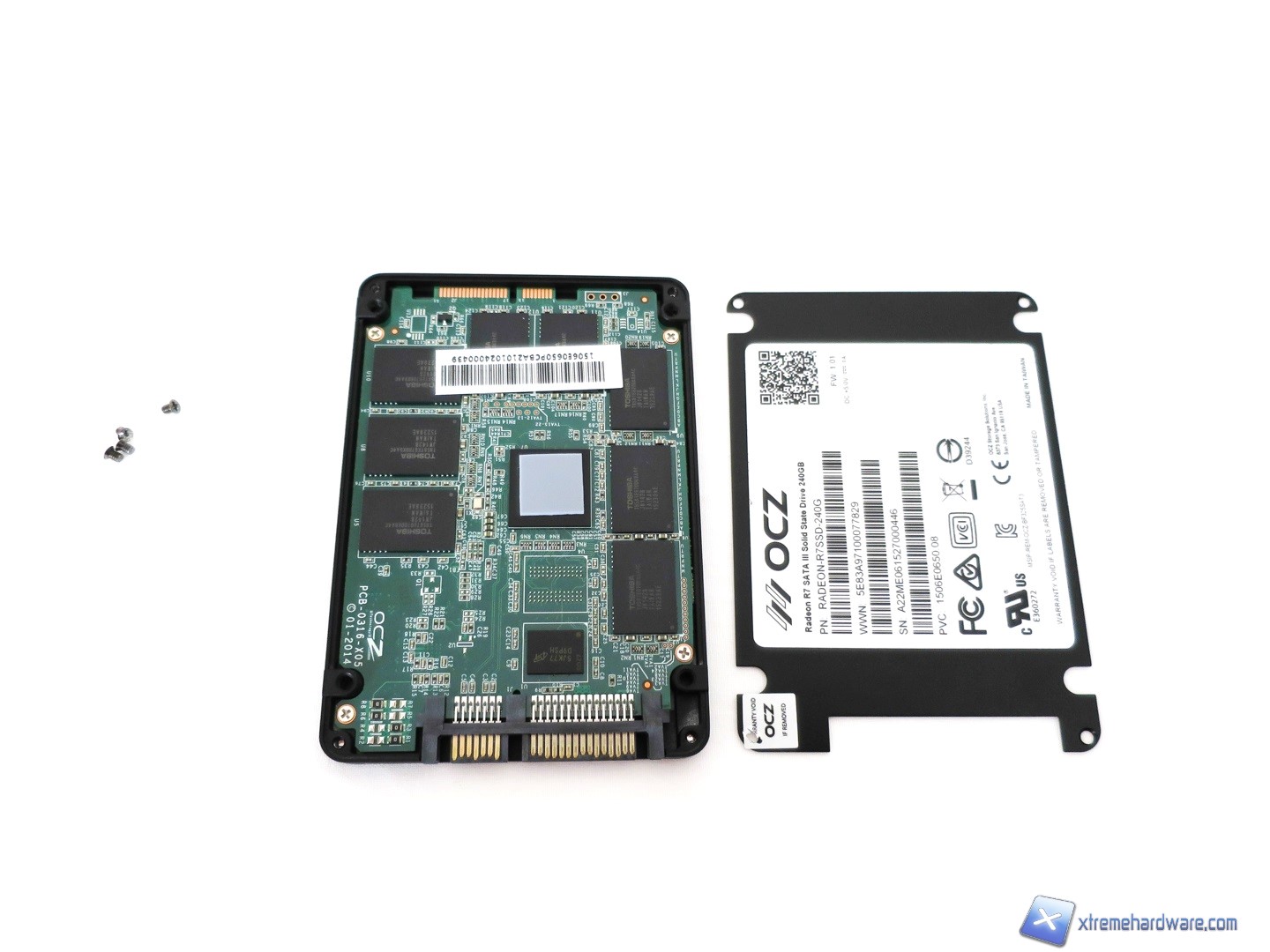 Torniamo con il modello Radeon R7 ad avere le classiche viti per accedere al controller/PCB dell’SSD. AL solito troviamo quattro viti a croce presenti ai quattro lati inferiori dello chassis, di cui una coperta dal sigillo di garanzia.