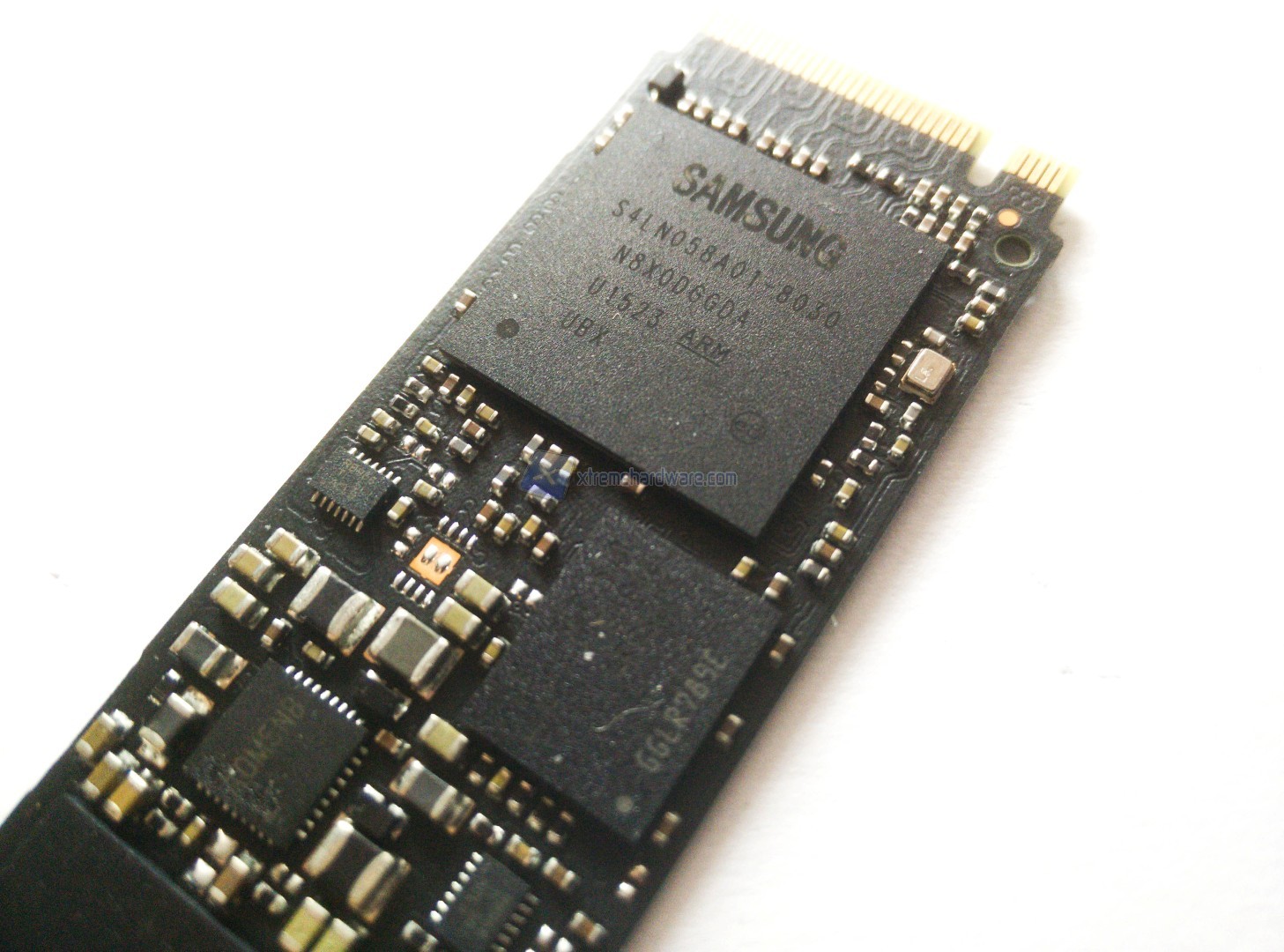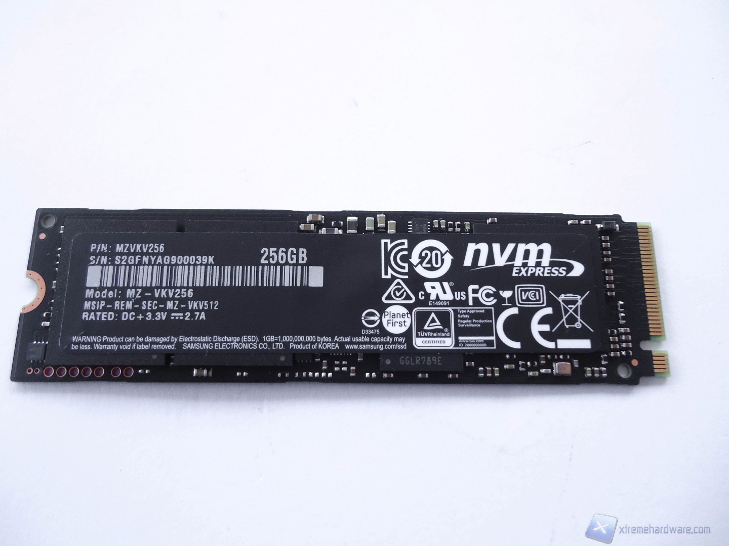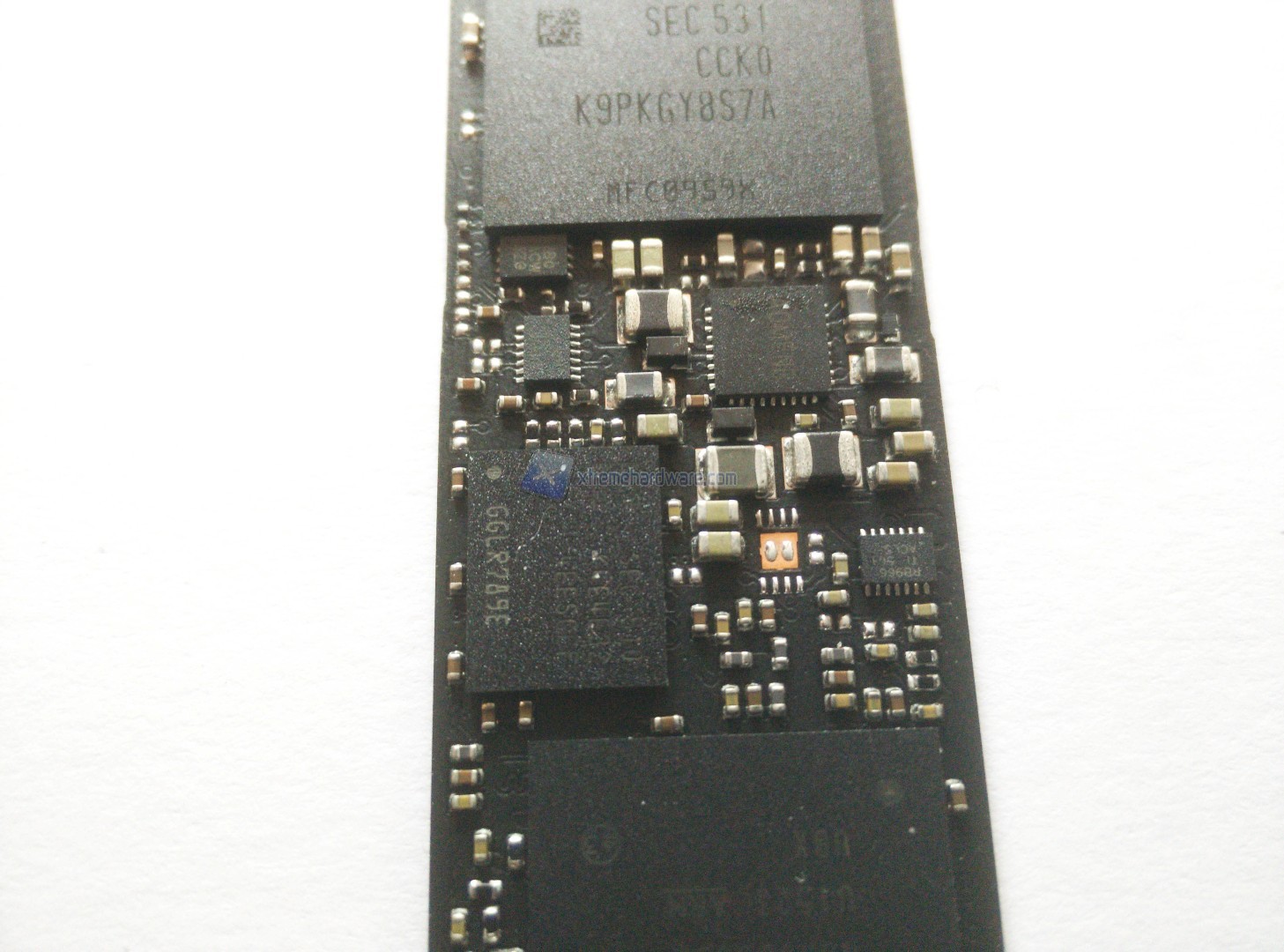 Sempre sul PCB del prodotto troviamo disposti in parallelo gli unici due chip di memoria V-NAND Samsung di cui questo prodotto è dotato, ogni chip ha una capienza di 128GB per un totale di 256GB. Il modello di questi due chip ROM è K9PKGY8S7A.