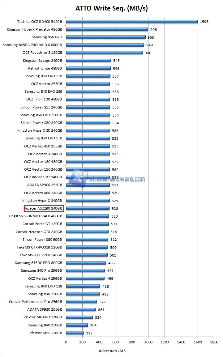 A seguire i grafici con i valori ottenuti dall’Apacer AS2280 da 240GB: