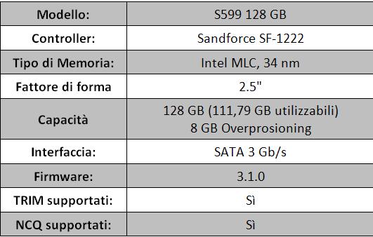 SSD ADATA S599 128GB. Pregi e difetti del SandForce SF-1222 - Specifiche Tecniche