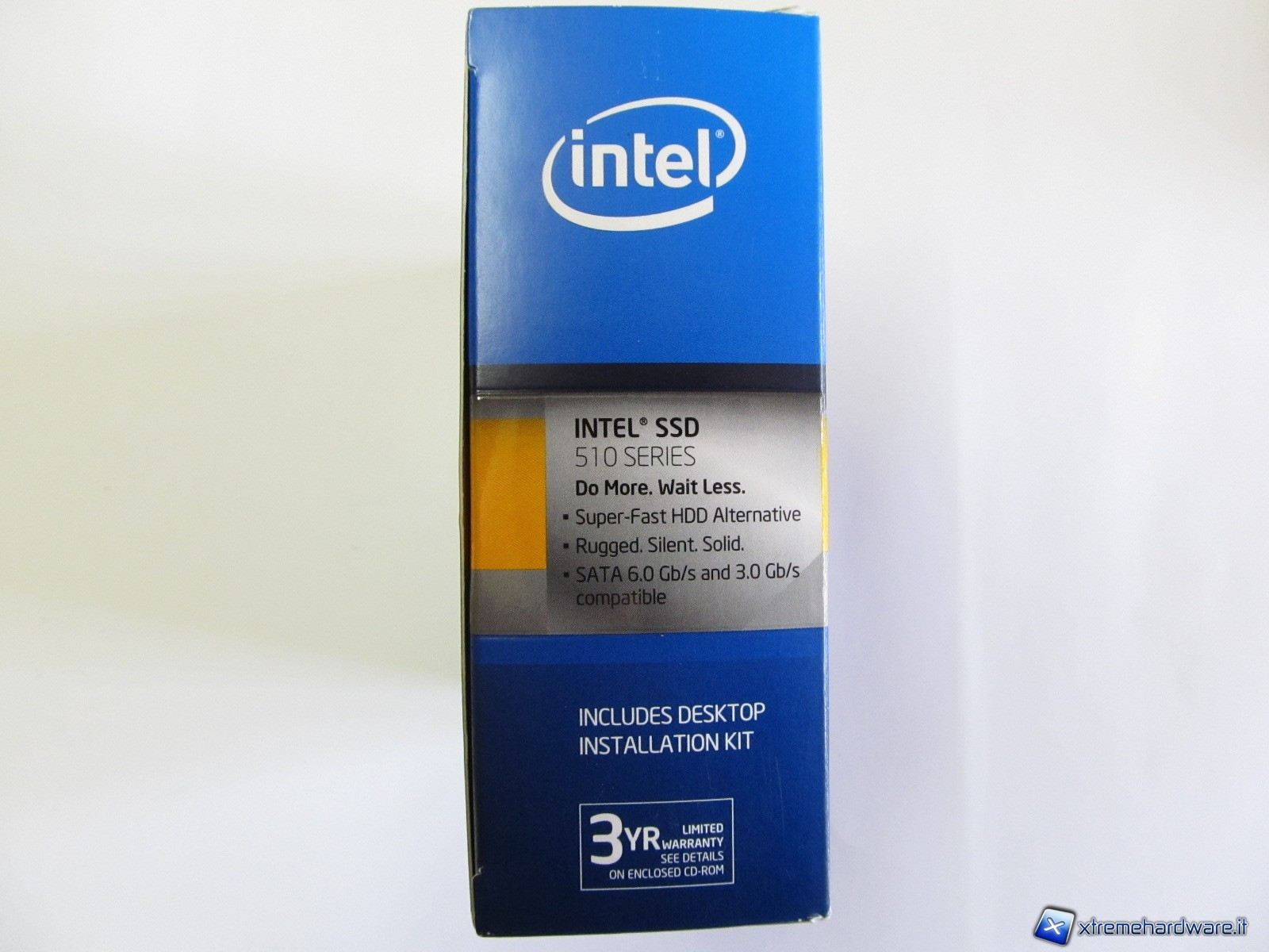 Il drive Intel 510 120GB è giunto in redazione contenuto nel classico box Intel di colore blu, riportante nella facciata principale il logo della casa produttrice, il taglio (120GB) e il nome del prodotto in esso contenuto. Nella facciata posteriore invece, troviamo alcune informazioni multilingua relative al drive contenuto.