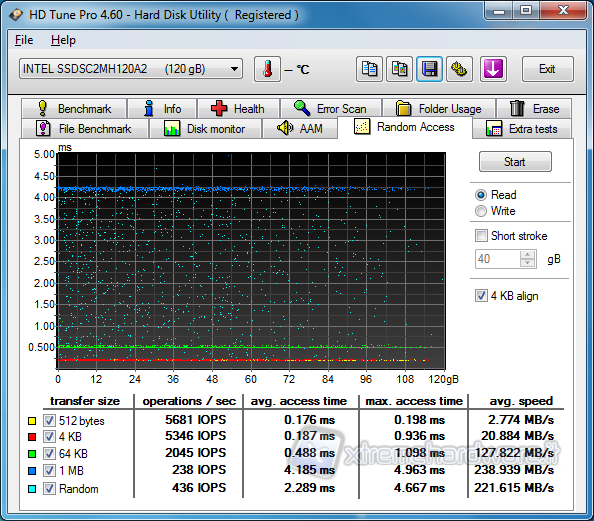 Anche per quanto riguarda i tempi di accesso al disco, questo test effettuato in modalità random rivela che il controller Marvell risulta essere più lento rispetto all’Intel.
