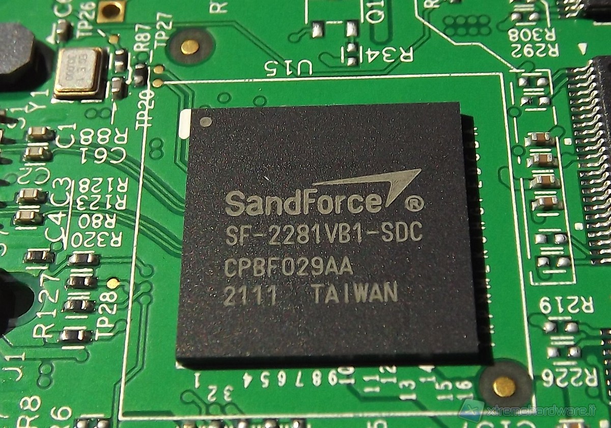 Tra le caratteristiche principali di questo controller vi è la possibilità di accedere contemporaneamente a 8 moduli NAND Flash, ogni modulo in questo caso ha una capacità di 16GB. I moduli in realtà installati sono 16, ciò vuol dire che i dati vengono letti e scritti alternativamente su due moduli per ogni canale. Ciò permette di ottimizzare i tempi di attesa tra una scrittura e l’altra, processando richieste di lettura ad un modulo nel frattempo che l’altro recupera i dati dalle celle di memoria. Questo si traduce ovviamente in un incremento generalizzato delle prestazioni rispetto all’utilizzo di soli 8 moduli, 1 per canale. I moduli NAND sono di tipo MLC a 25nm e sono progettati per 5000 cicli di lettura/cancellazione.